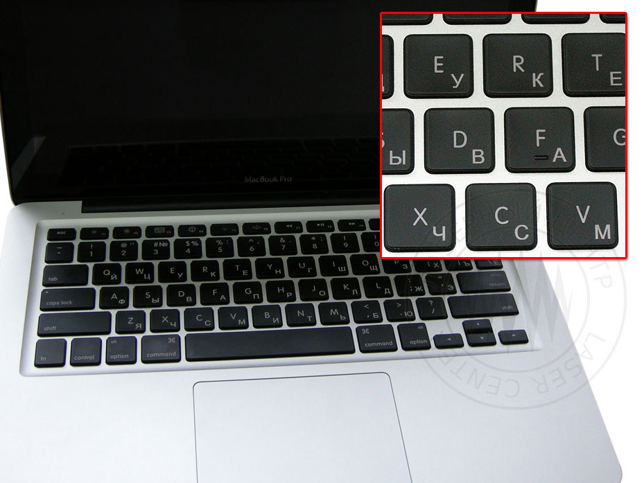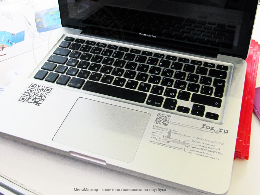 Engraving of the body and the keyboard of the laptop: